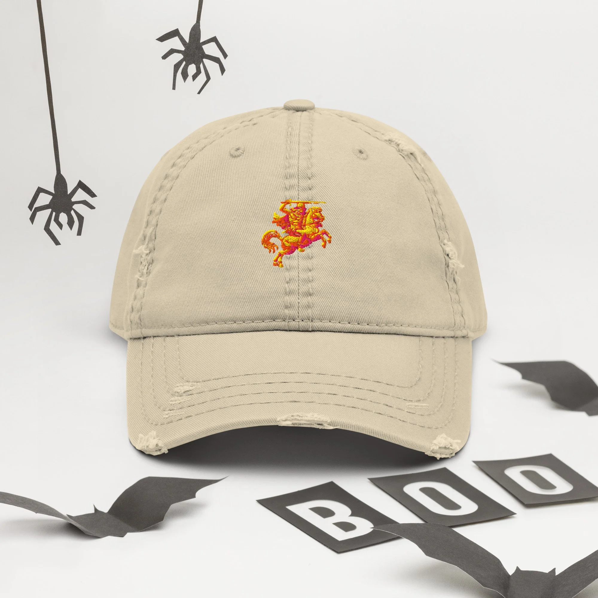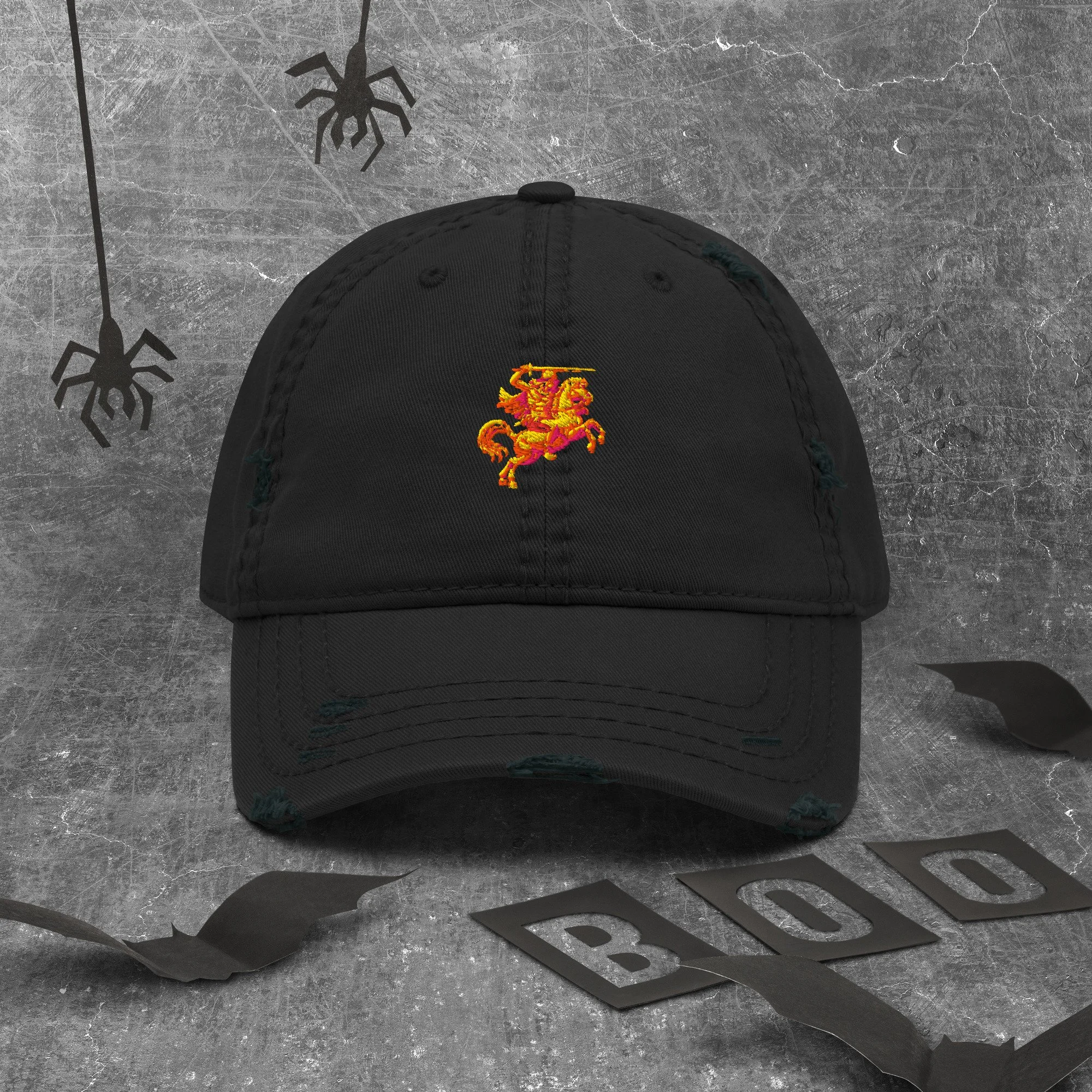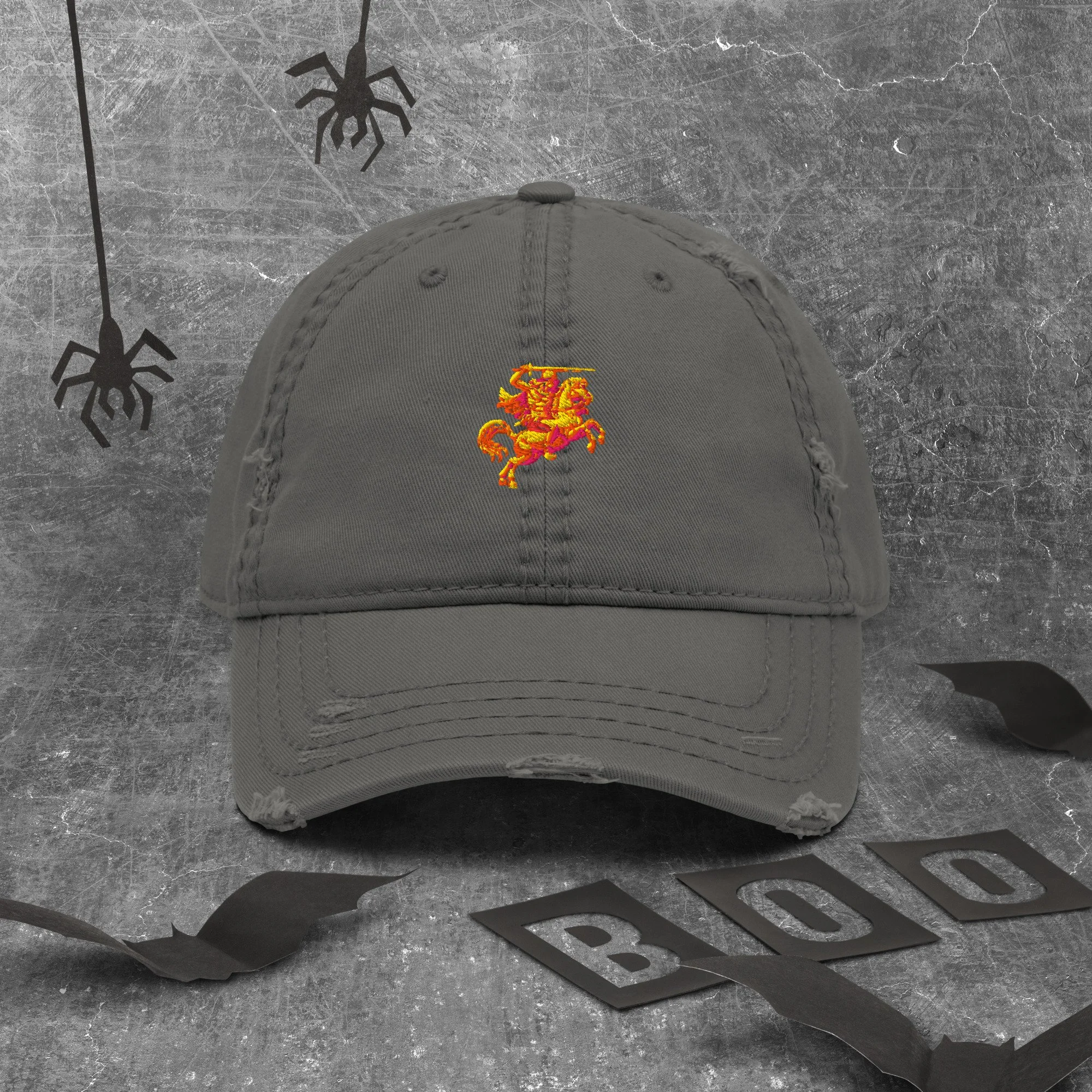 Expand your headwear collection with this fashionable dad hat. With a slightly distressed brim and crown fabric, it’ll add just the right amount of edge to your look. For a quick and easy outfit pair it with slacks, your favorite jeans, and a sports tee.