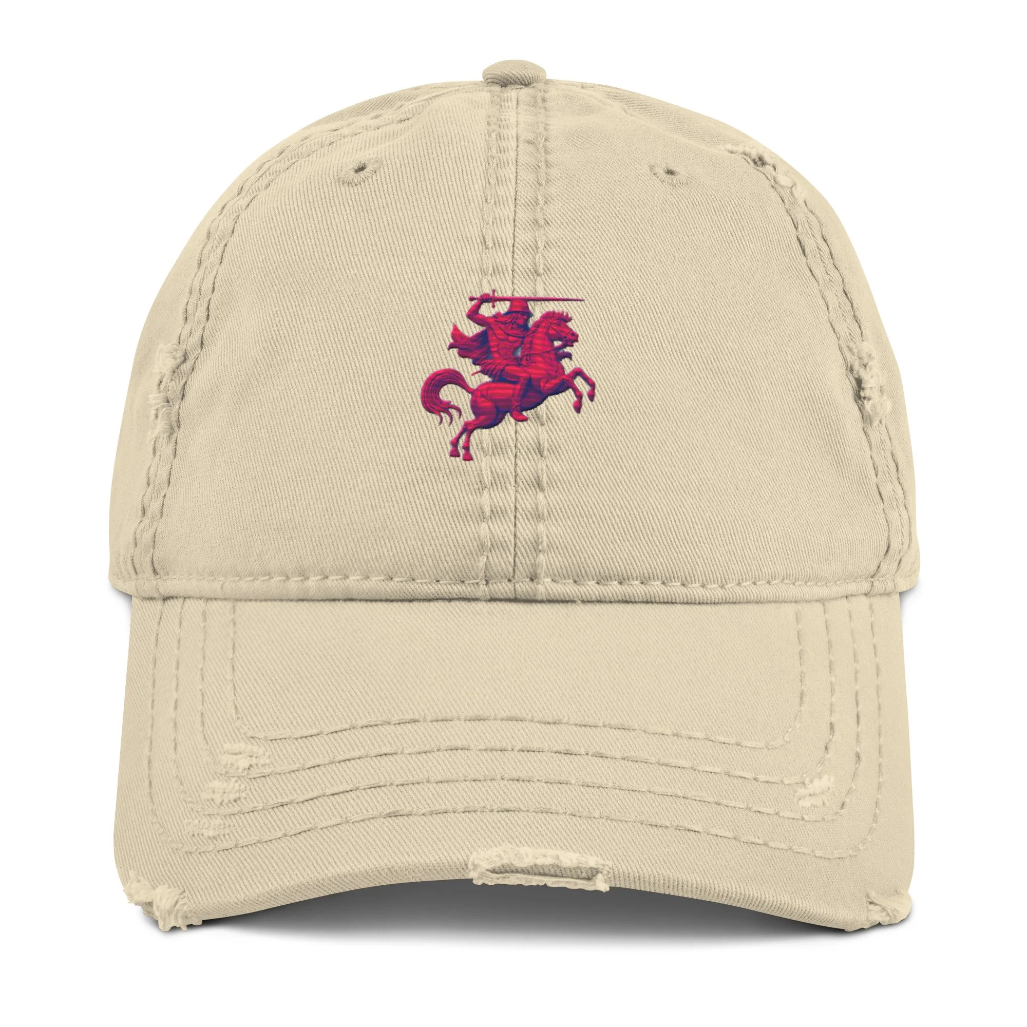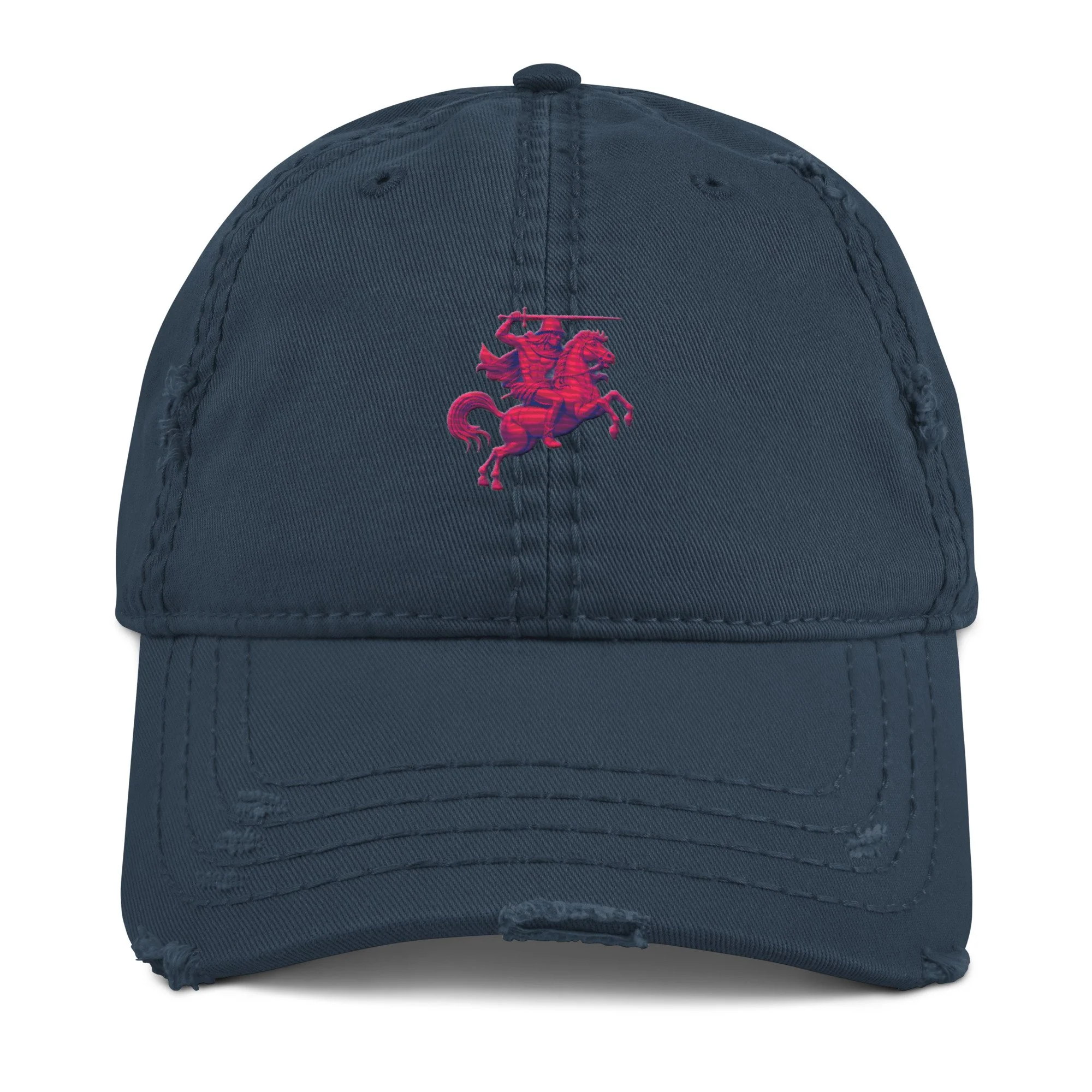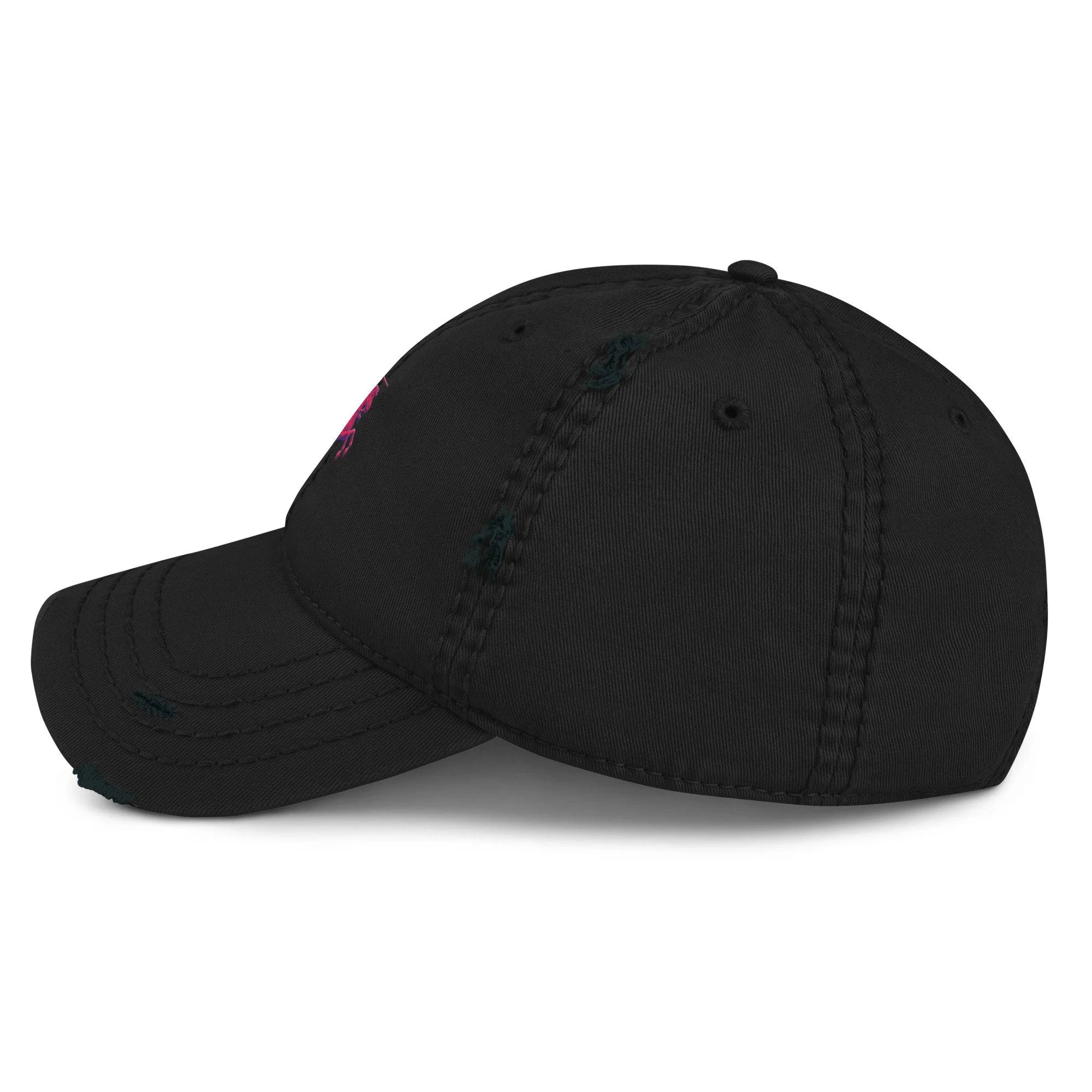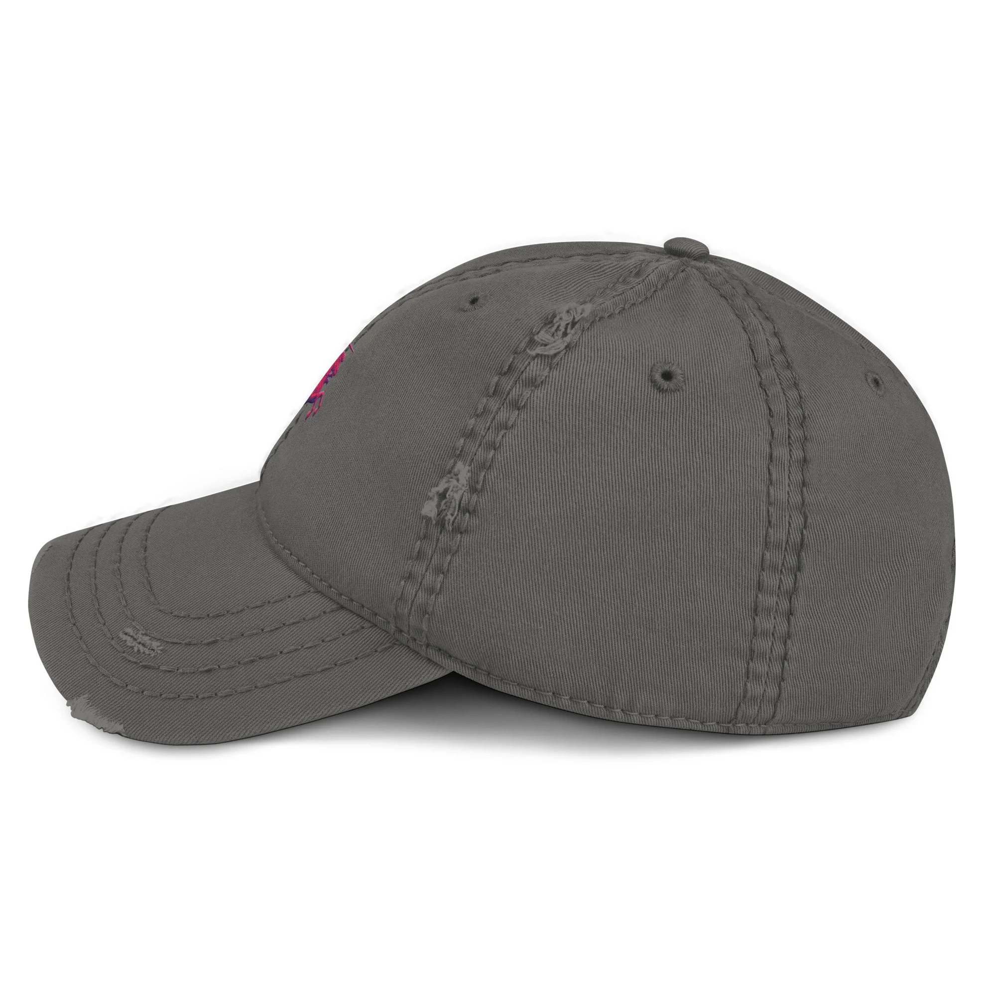 Expand your headwear collection with this fashionable dad hat. With a slightly distressed brim and crown fabric, it’ll add just the right amount of edge to your look. For a quick and easy outfit pair it with slacks, your favorite jeans, and a sports tee.
